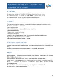 Memoria de calidades gráfica: Revisa nuestra memoria de calidades gráfica donde podrás encontrar los pavimentos, azulejos, muebles de cocina y encimera.